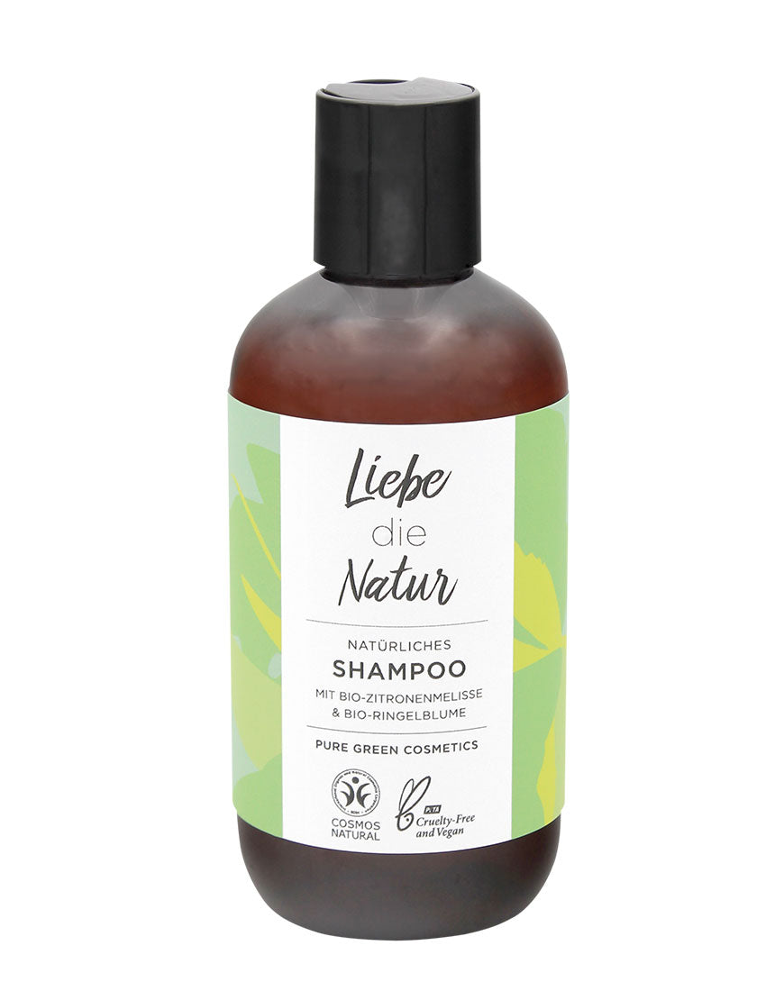 Das Liebe die Natur Shampoo mit BIO-Zitronenmelisse und BIO-Kräuterextrakten reinigt das Haar intensiv ohne es auszutrocknen.